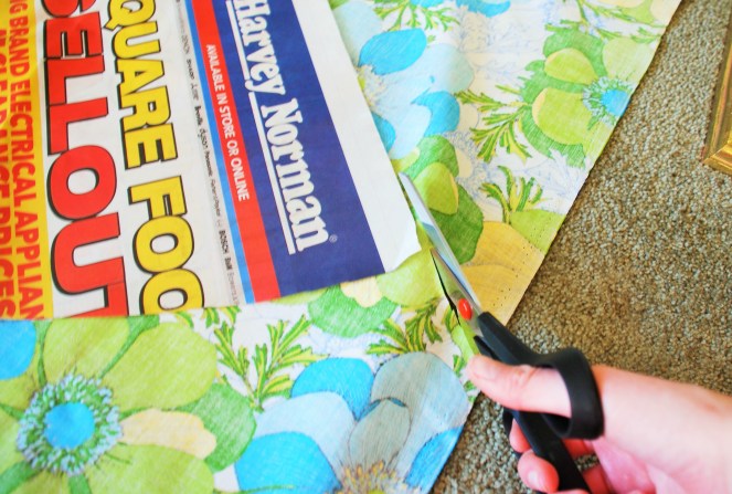 2. Lay the pattern over the fabric, making sure you don’t leave too much waste fabric around the edges. Place a couple of pins to hold the pattern in place, and then cut around it.