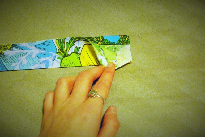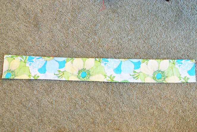 4. Cut a waistband. Measurements will depend on how thick you want the waistband to be, but I make mine 4 inches longer than my waist measurement, and about 3.5 inches wide.