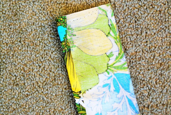 3. Repeat step 2 another three times so that you have four quarters. Note: if your fabric is wide enough, you won’t need to do this – instead you can fold your fabric into quarters and cut around the pattern that way to get a full circle in one step.