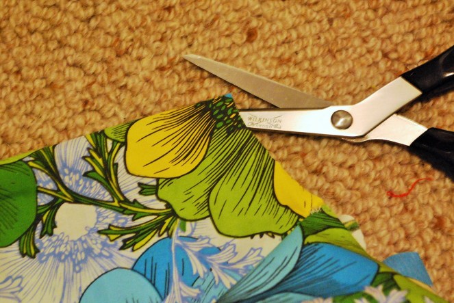9. Take your scissors and make a cut down the skirt for the side opening. If you’ve made the skirt in quarters, I recommend making the cut in the middle of one quarter (as shown) – if you had left one of the seams open that would mean you had a seam directly down the front centre of the skirt.