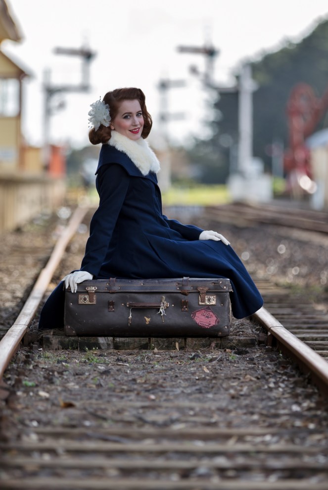 Unfortunately the trains weren’t operating that day so we couldn’t get the old Hollywood movie-style steam from the trains in the photos, but the suitcases gave the photos a wonderful extra vintage touch. I wore a dress from Shabby Apple, cardigan from New Look, and my favourite navy coat from Hell Bunny (you can get the red version from Modcloth here). And of course I had to wear gloves and a faux-fur collar to finish the look!