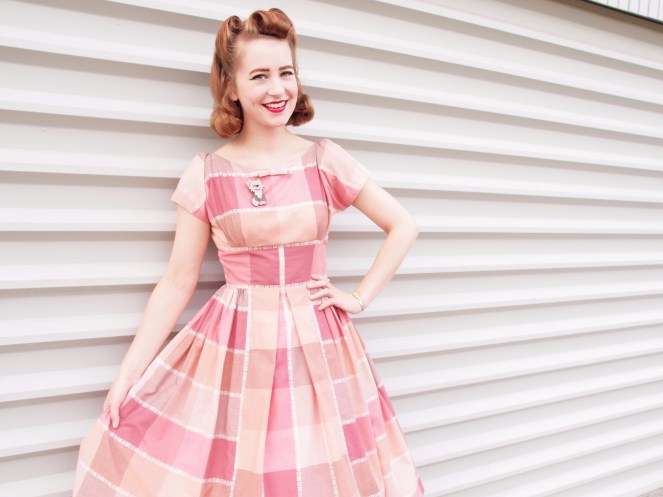 I was so lucky to receive this adorable kitty cat brooch from Hannah! As a self-confessed crazy cat lady in training I couldn’t help but let out a squee when I opened the box. This is a truly beautiful brooch which has been perfectly crafted and one I expect to be very durable. I love that the size is just right, and especially how the little kitty has such a sweet face! I knew it would go perfectly with the colours in this vintage dress, and of course I had to have some ‘Small Victories’ victory rolls in my hair to keep in theme!
