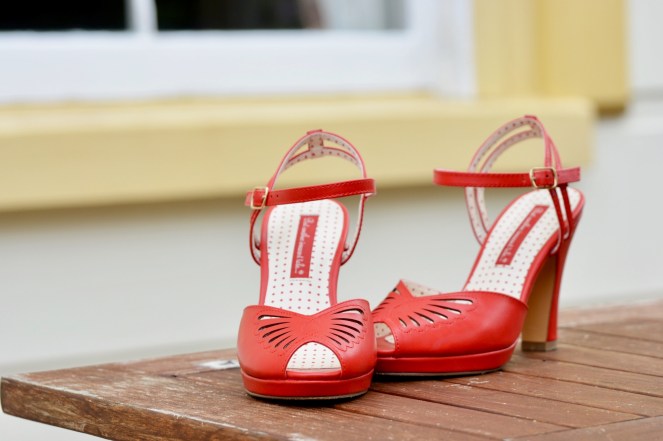 I love that BAIT make such brightly coloured footwear, and that so many of their styles have a Mary Jane or T-bar strap of some kind so that my narrow feet don’t slide out of them! The Lorraine heels don’t disappoint on either account, being a bright cherry red that I adore and wear frequently, and keeping my feet secure with an anke strap. I was still worried as to whether I would walk out of them as my interactions with strappier heels usually involve the back strap frequently sliding down my heel, but this hasn’t happened at all with this pair. I’m not a huge fan of my toes so I appreciate that they don’t show too much toe cleavage, and I love how they match so perfectly with many of my vintage summer dresses!