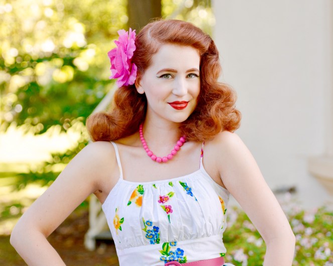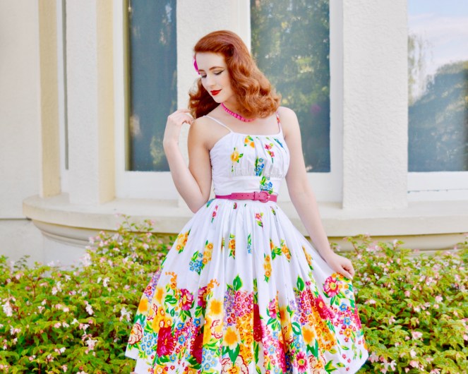 I have become thoroughly besotted with Hearts and Found, and it seems a lot of the pinup community has too! It’s hard to go past their great quality and amazing fabrics, and certainly hard to choose just one style! I ordered a couple of versions of the Grace dress towards the end of last year and I absolutely adore them, so of course I had to bring one to the blog to show you all!