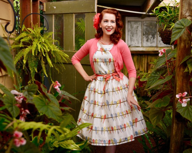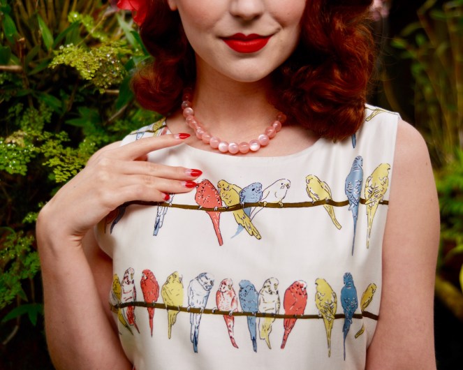 Super cute prints are definitely a running theme at Palava! From zoo animals to London border prints and of course some gorgeous florals, each style is loaded with a sense of fun, whimsy, and mischief. I chose the budgie print as I love the colourway of the peachy-pink, yellow and blue birds on the white background as these are colours I wear a lot, and it reminds me of some vintage prints I’ve seen featuring birds on a wire. It features matching buttons up the back (which I had no trouble doing up myself!) and generous pockets.