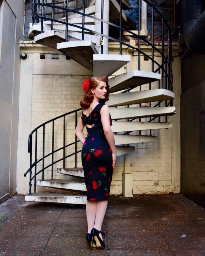 Wearing a form-fitting dress is always daunting for me; I’m so used to wearing poofy skirts everyday that it feels so different! Any weight gain I have always goes straight to my lower tummy so it’s something I feel self-conscious about and I will shy away from wiggle dresses as there’s nowhere to hide. But if any dress is going to get me out of my comfort zone it’s one from Stop Staring, so I’ve donned their Alabama dress for today’s post!