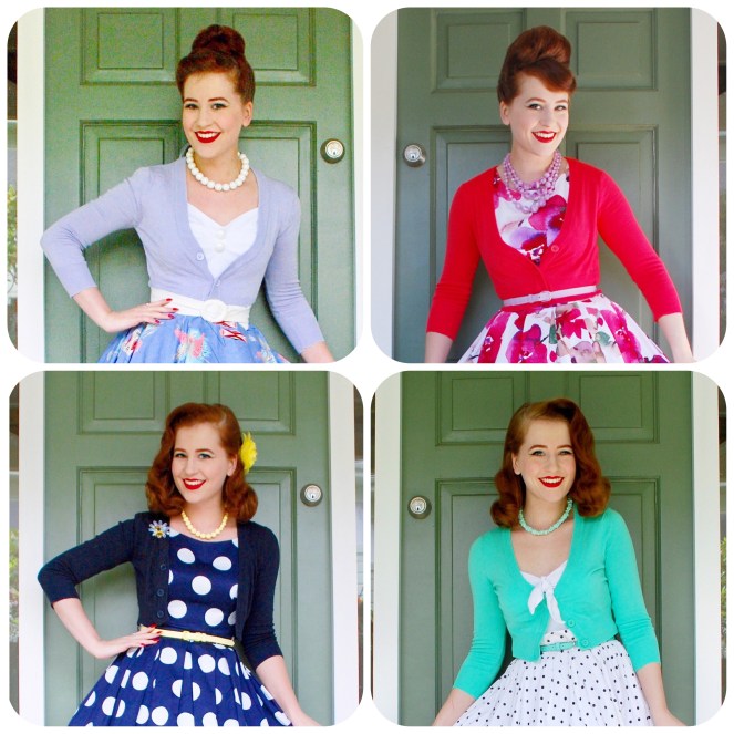 After Modcloth, many other brands picked up on how wonderful these cardigans are and so you can find them at all sorts of stockists in a huge range of colours. Modcloth is still selling them as their Dream of the Crop style, now with 11 colours to choose from and a larger size range that goes from XXS to 4X (where most brands stock only S to 4X). Doll Me Up have them available as the Tootsie Crop Cardigan in a whopping 37 different shades, and Le Bomb Shop are close behind with their Cutest Cropped Cardigan in 34 different colours. Pinup Girl Clothing also have 18 colours available in their Cropped Cardigan. There are many other brands that stock them as well, but I’ve just listed those I’ve bought from here. Prices range between $23-29USD depending on where you buy, and these stores often have discount coupons available which will make them even more budget-friendly.
