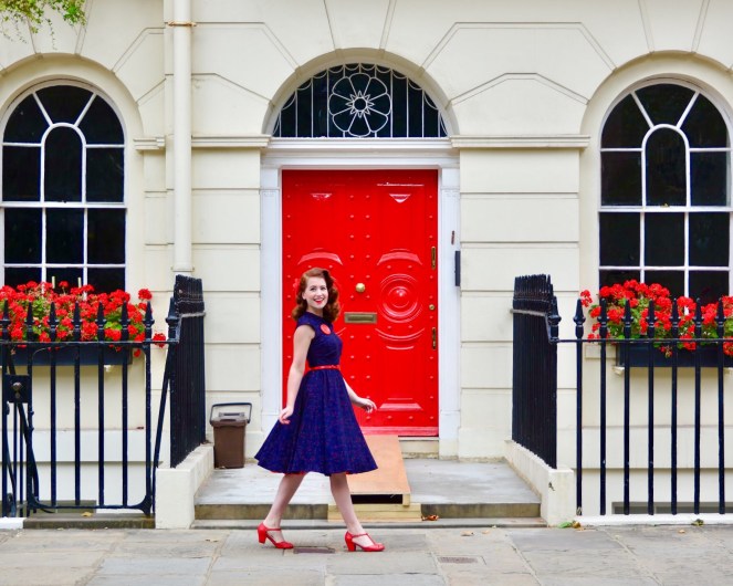 I have tried to bring as many things with me on my trip to London as I can to shoot for the blog, to make the most of the new and exciting locations! One such dress is the Anna Marie swing dress from one of my most beloved labels, Stop Staring. I have been delighted by the flowers that line the streets here, and when we came across these bright red planter boxes and huge red door we knew this was the perfect place to capture this dress.