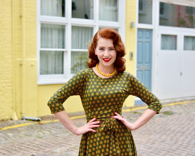 I am a huge fan of the elbow-length sleeve for keeping me cosy when the seasons change, and the Katharine dress delivers on this. It also features a gentle scoop neck, waist tie, and twirly skirt. The harvest floral print is part of the Karina Dresses signature collection fabrics, and gives me all the fall vibes with its mustard floral print on a navy background.