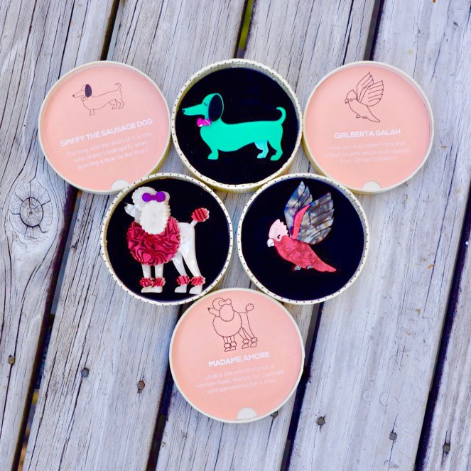Madame Amore definitely knows a thing or two about style! This elegant pooch has well-groomed snow white fur, trimmed with marbled pink and black resin and a bright purple bow. Having previously been seen in classic combos of red, black, and white, this latest recolour shows that Madame Amore is really branching out. Erstwilder have created a number of well-loved poodles over the years in varying poses and colours, so if you’re a poodle lover or just a poodle brooch lover then you’ll want to be quick to add this new version of Madame to your collection.
