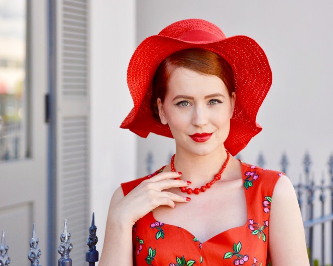 Maiocchi is a Brisbane-based brand creating fabulous vintage-inspired frocks, born out of designer Deanne Mayocchi’s frustration with being unable to find the perfect dress. They focus on fun prints, classic silhouettes, and making everyone who puts on a Maiocchi dress look good! Dee has been so kind to send me the Cherry Belle dress in Cherry, a gorgeous showstopper from their California Roll winter collection. Find out more about it below!