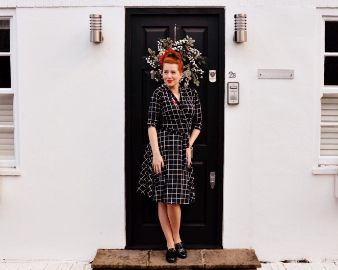 As the days get colder and the nights get longer, some mornings it’s hard to motivation to get out of bed and get dressed. This is why I’m always so grateful for Karina Dresses, because they make dressing and looking good just so darn easy! One of my recents faves is the Ruby dress in paycheck print, and you can bet I made it festive – see more after the jump.