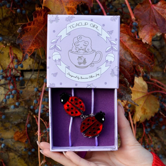 Can you believe that Valentine’s Day is only a month away? 2019 is already flying by faster than I expected! Though I’m not big on celebrating V-Day per se, I love any excuse to dress to theme so I’m already planning my outfits for Valentine’s week. That means getting right down to accessories, which is why I’m thrilled for the new Love Token collection from Teacup Girl! This is a range packed with the sweetest brooches around that’s being released today – 12pm AEDT to be exact. I’ve chosen some adorable ladybugs which have been brought back by popular demand from their first collection; read all about them and the Teacup Girl brand after the jump!