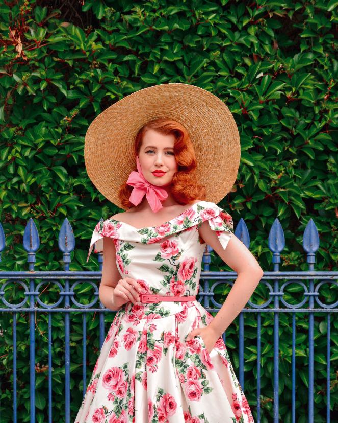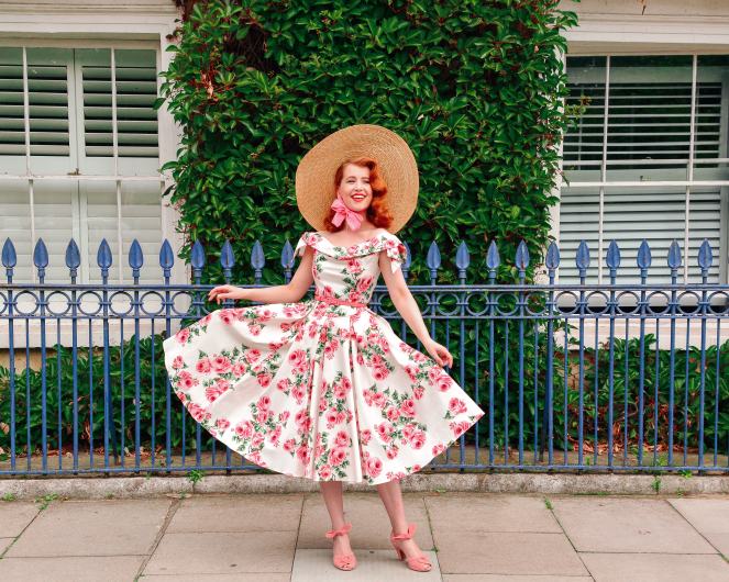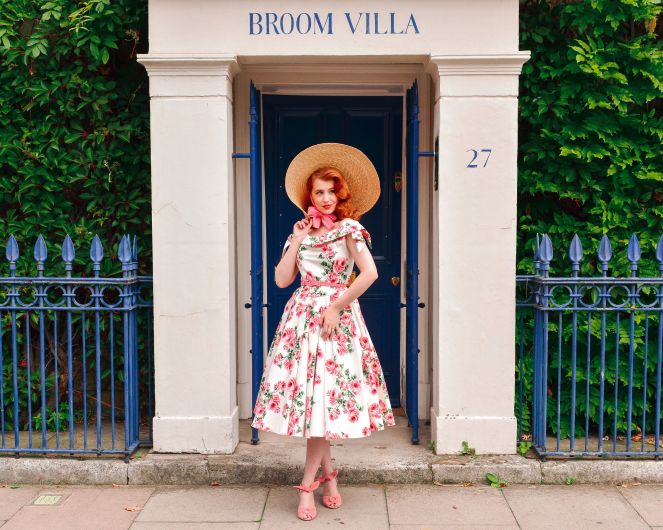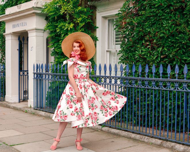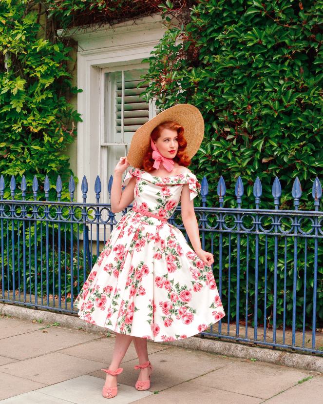 Tilly prom dress in vintage pink rose print – c/o The Pretty Dress Company