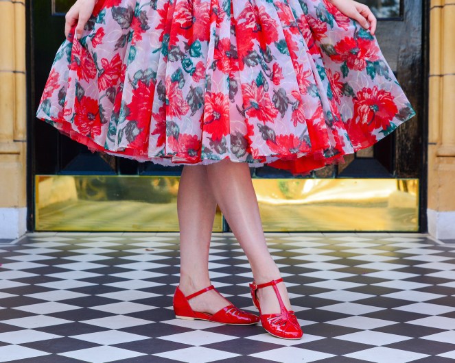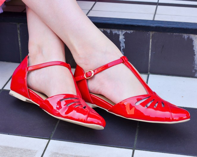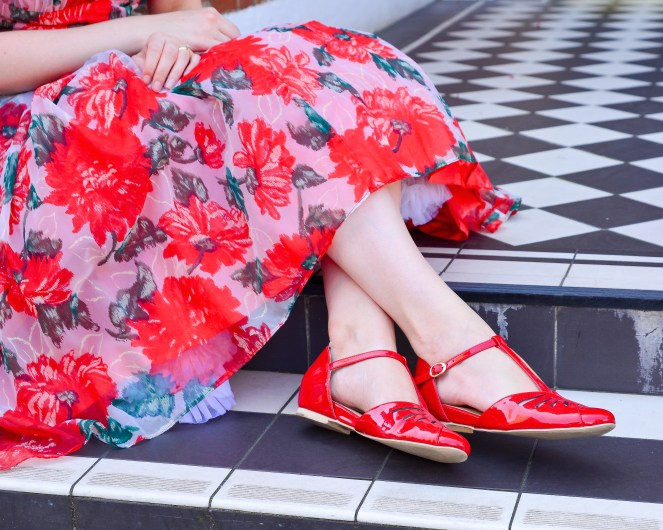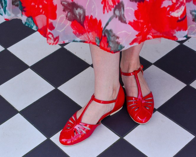 I can just imagine strolling around wearing the Firenze flats in the gorgeous and romantic Italian city they’re named after! These beauties are all vegan but made with the highest quality materials to ensure they look and feel as close to leather as possible. They feature cut-out detailing at the front (I think it looks like butterfly wings!), a T-strap, and side buckle closure. I styled the Firenze flats in an all-red ensemble, as I knew they’d be a perfect match with my vintage Victor Josselyn dress! I’m also really looking forward to using them through autumn and winter to add a pop of colour to my darker outfits. I’m wearing my usual size 37 (I take a US 6.5 or a UK 4) and the fit is fantastic; I am always aware that with any pair of new shoes, even the ever-comfy styles from Charlie Stone, they’ll need a couple of wears to break in, but I was pleasantly surprised that for a full day of first wear (and thereafter) I didn’t need any plasters or get any blisters with this pair! Dream shoes indeed!