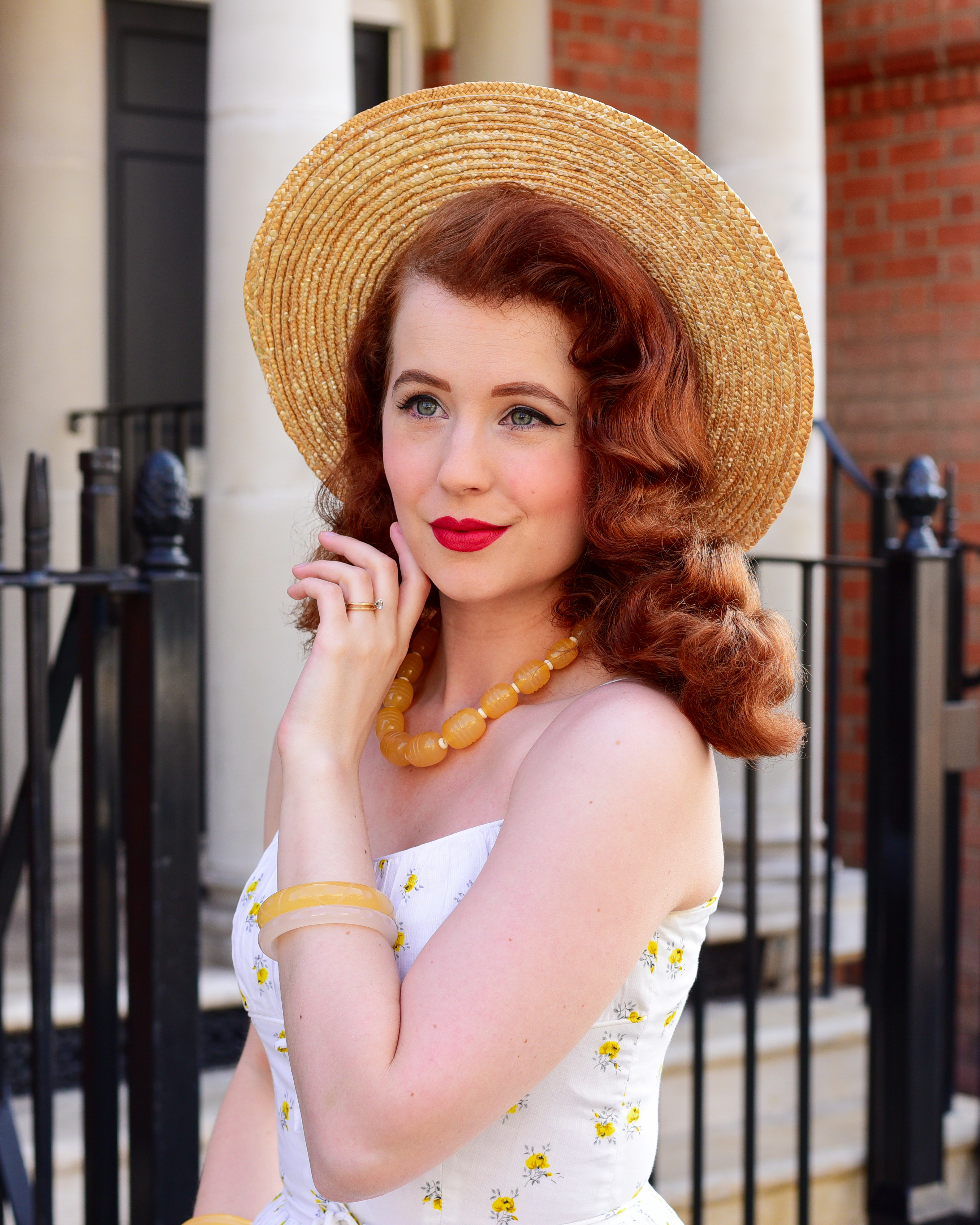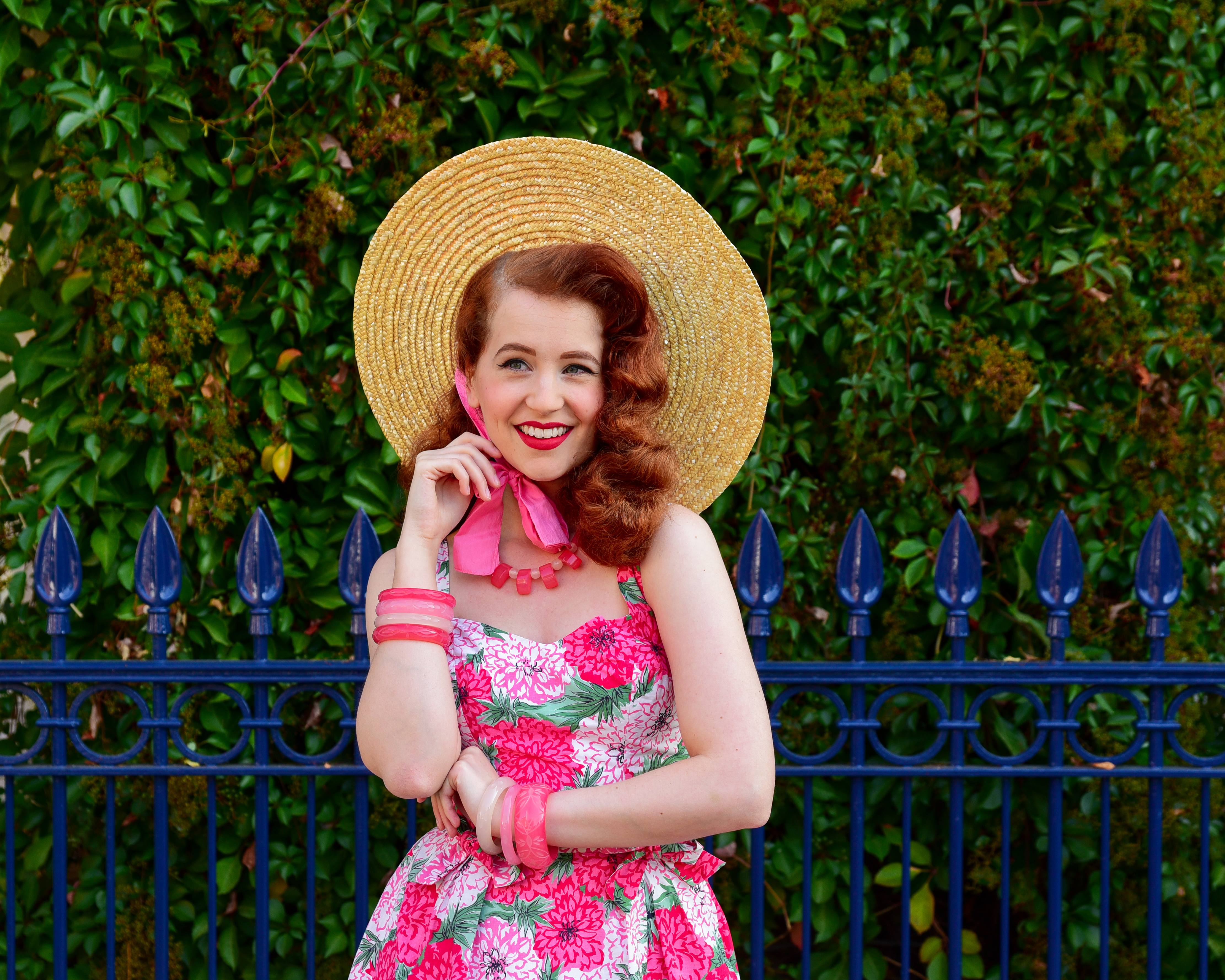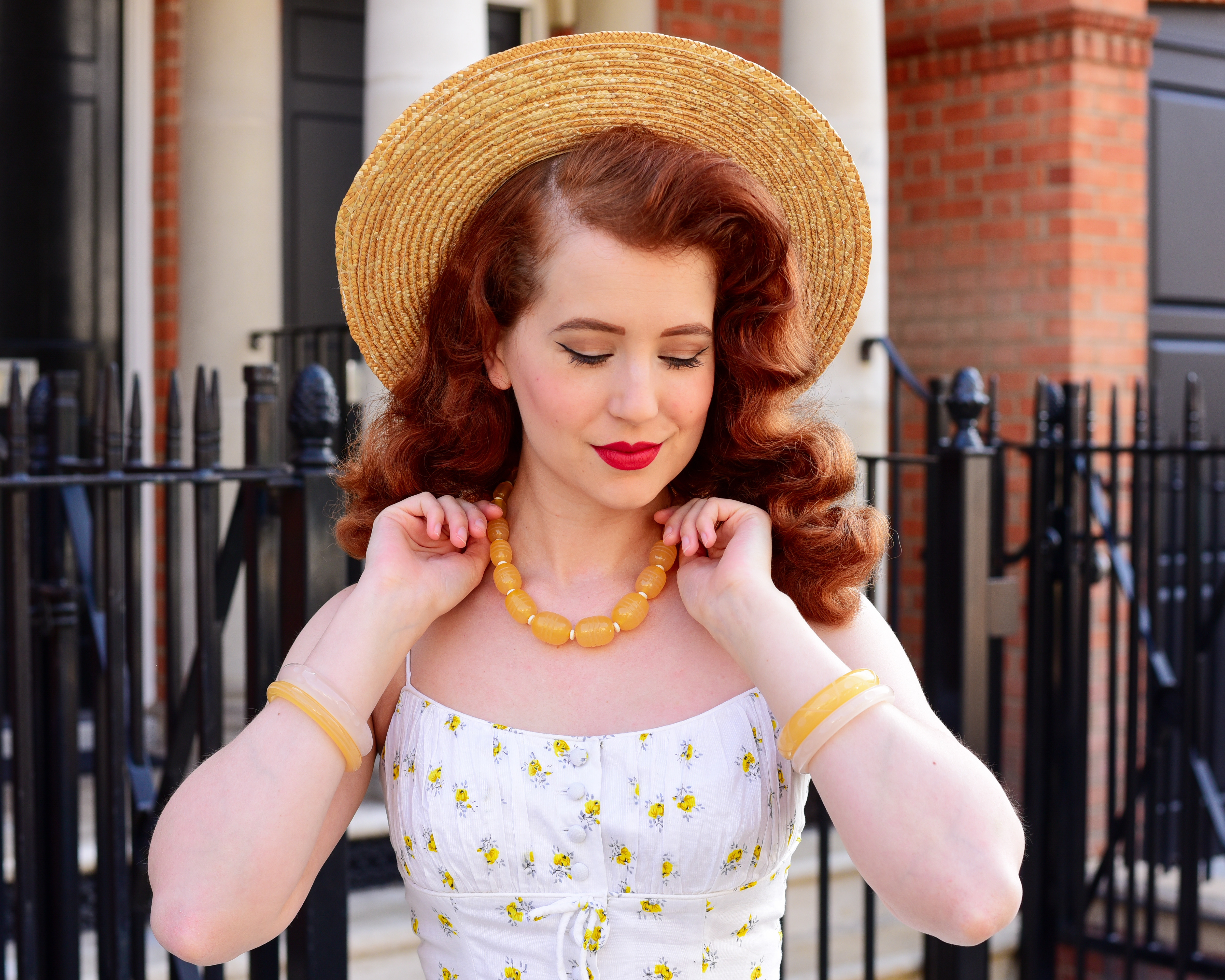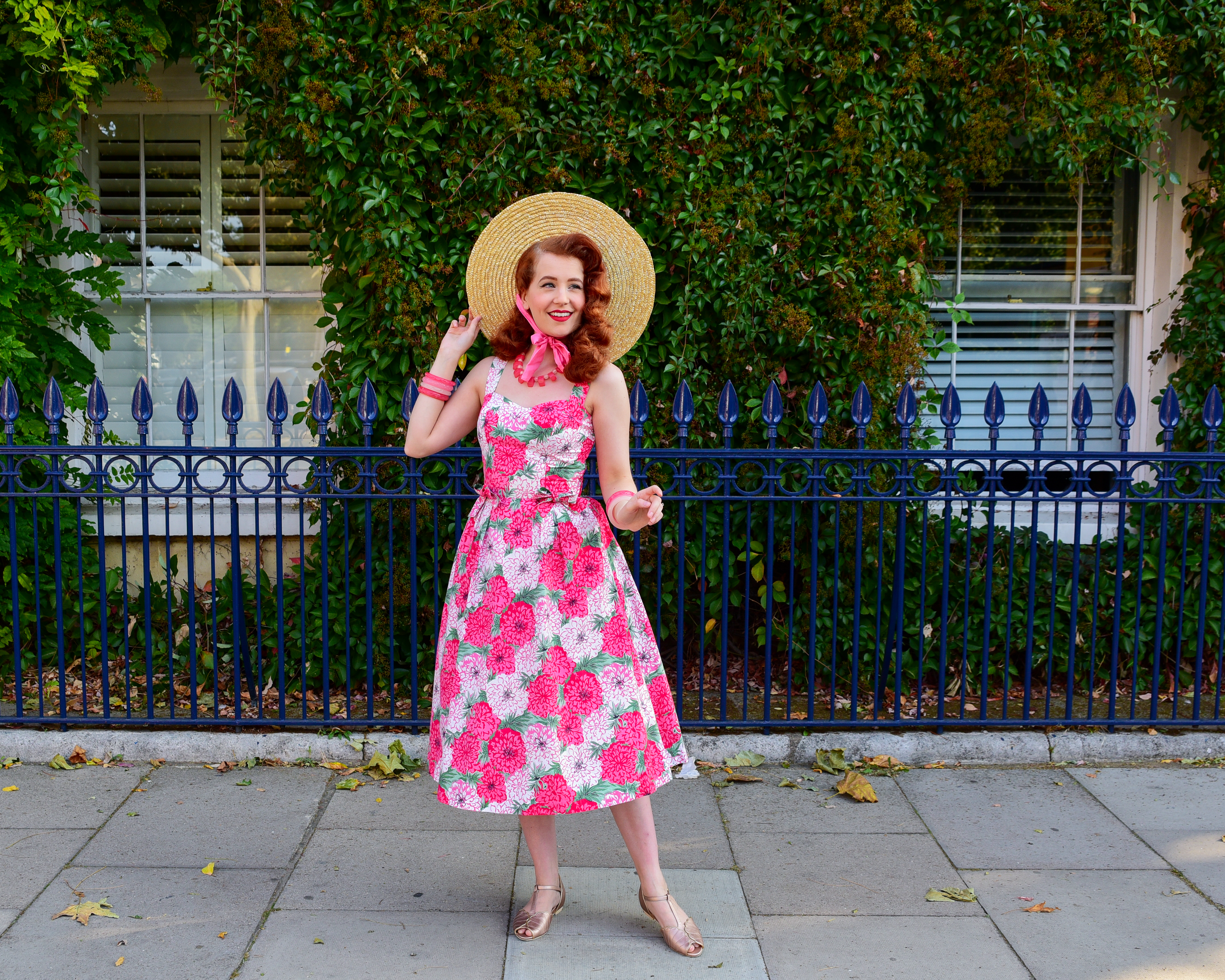 For my first outfit I’m wearing narrow and midi coconut Maiden fit bangles, narrow and midi rose Maiden fit bangles, narrow and midi bon bon Maiden fit bangles, a classic fit wide rose bangle, and the rose beaded necklace. I love how the colour combo was such a good match with my vintage Horrockses dress!