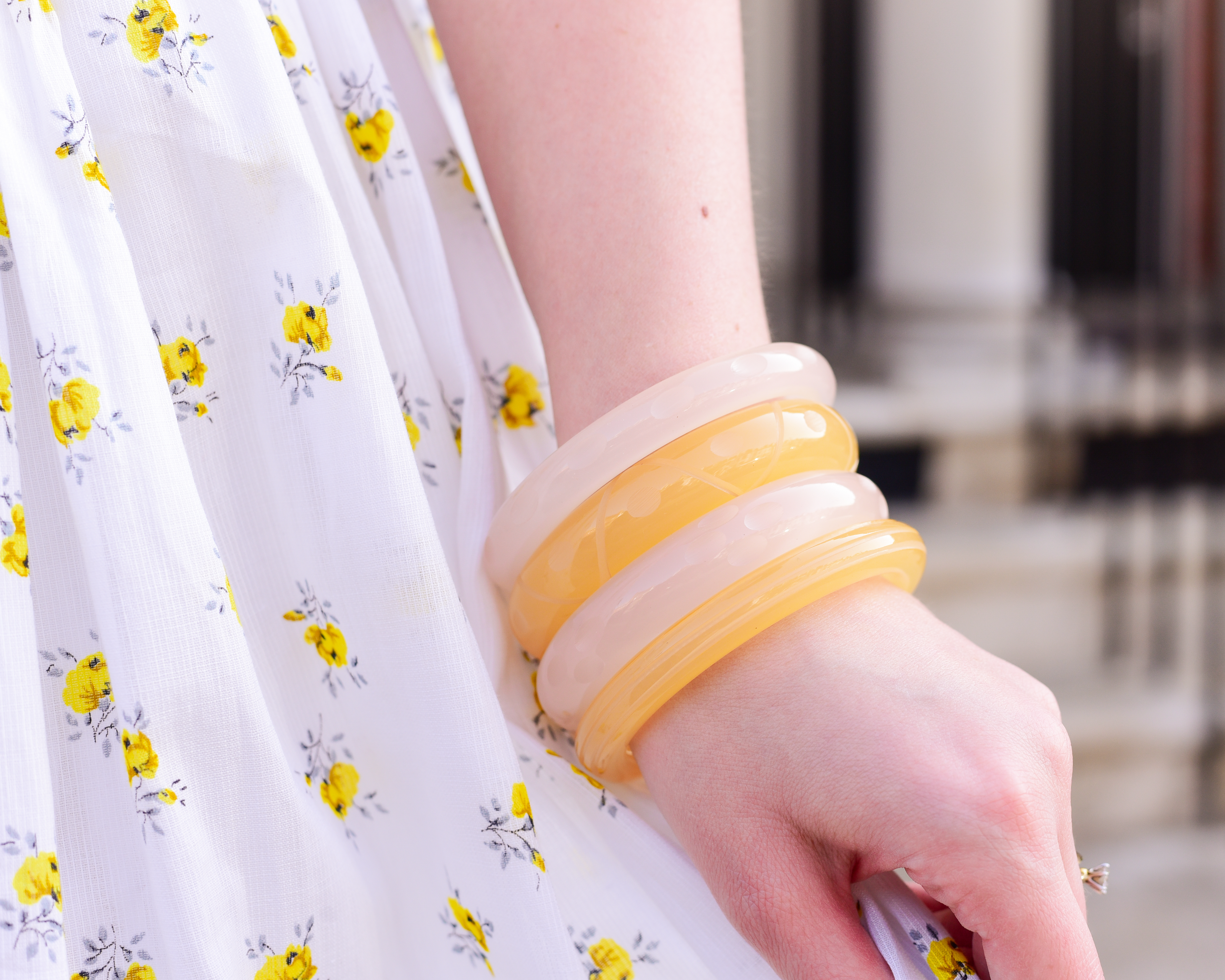 I can’t say I’ve ever had a strong bangle game – until now that is! Today I’m delighted to be featuring Splendette on the blog for the first time, a UK-based maker of vintage-inspired jewellery who are especially known for their amazing ranges of bangles. Keeping reading to find out more about them and see how I styled some of their wonderful collection!