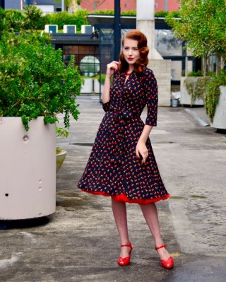 Modern day pinup with an overflowing wardrobe and a love of bright colours