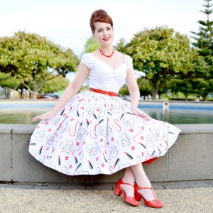 Modern day pinup with an overflowing wardrobe and a love of bright colours