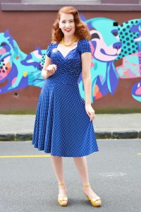 Modern day pinup with an overflowing wardrobe and a love of bright colours