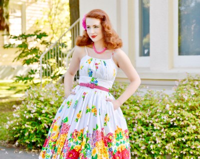 Modern day pinup with an overflowing wardrobe and a love of bright colours