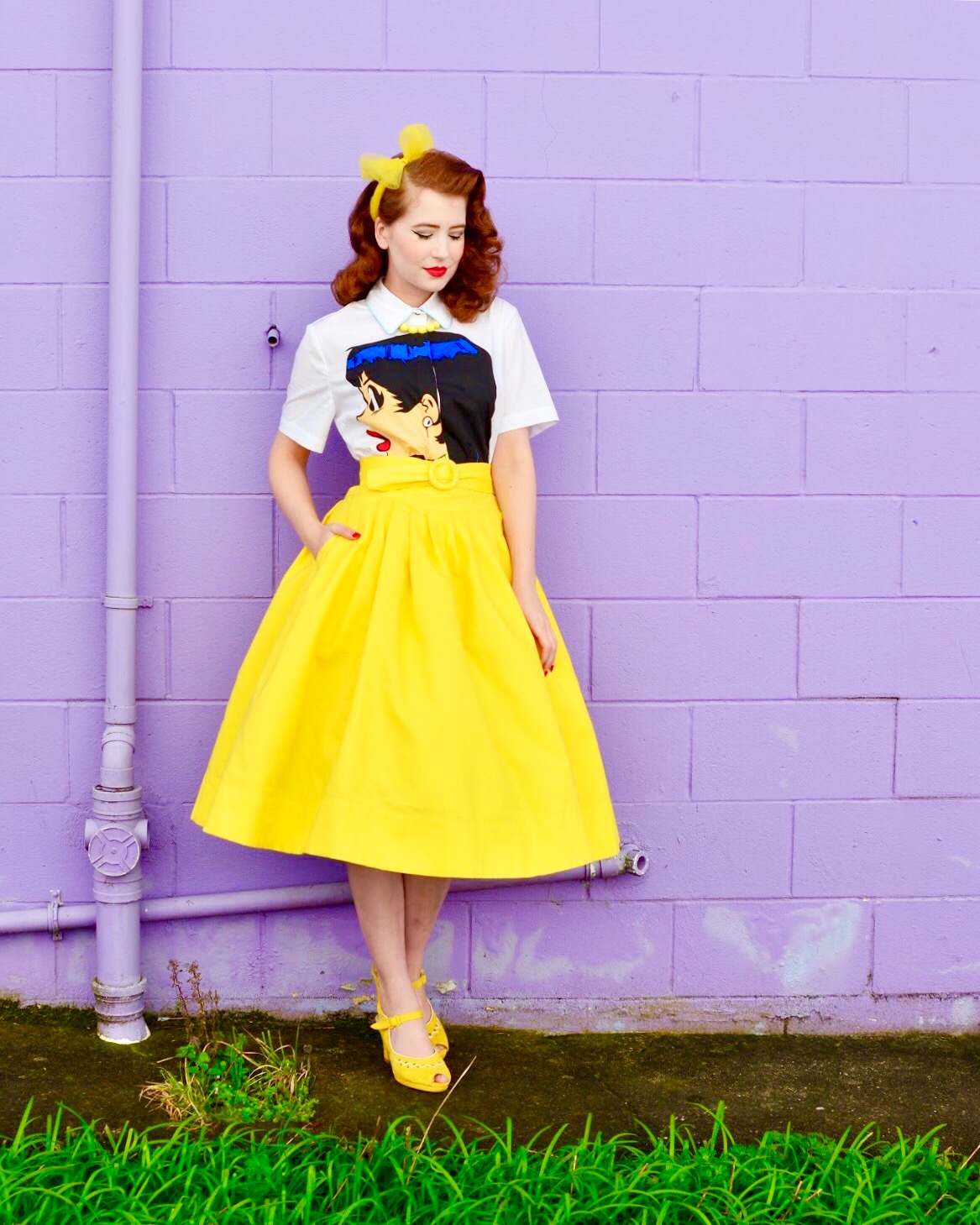Modern day pinup with an overflowing wardrobe and a love of bright colours