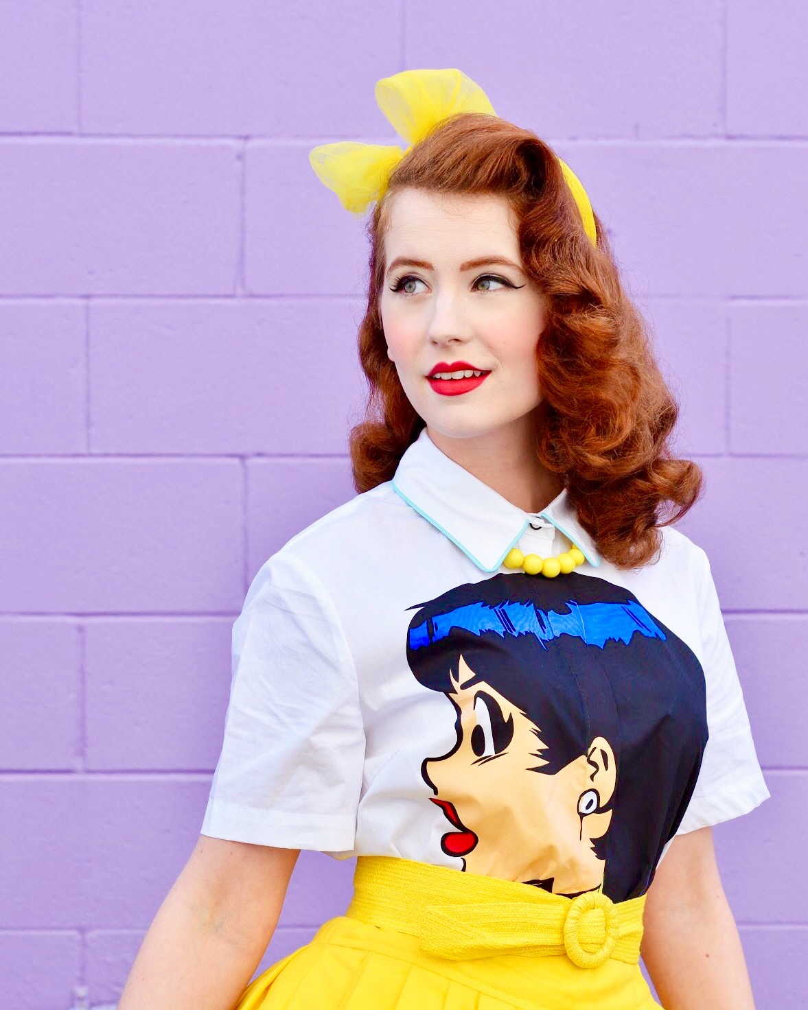 Modern day pinup with an overflowing wardrobe and a love of bright colours