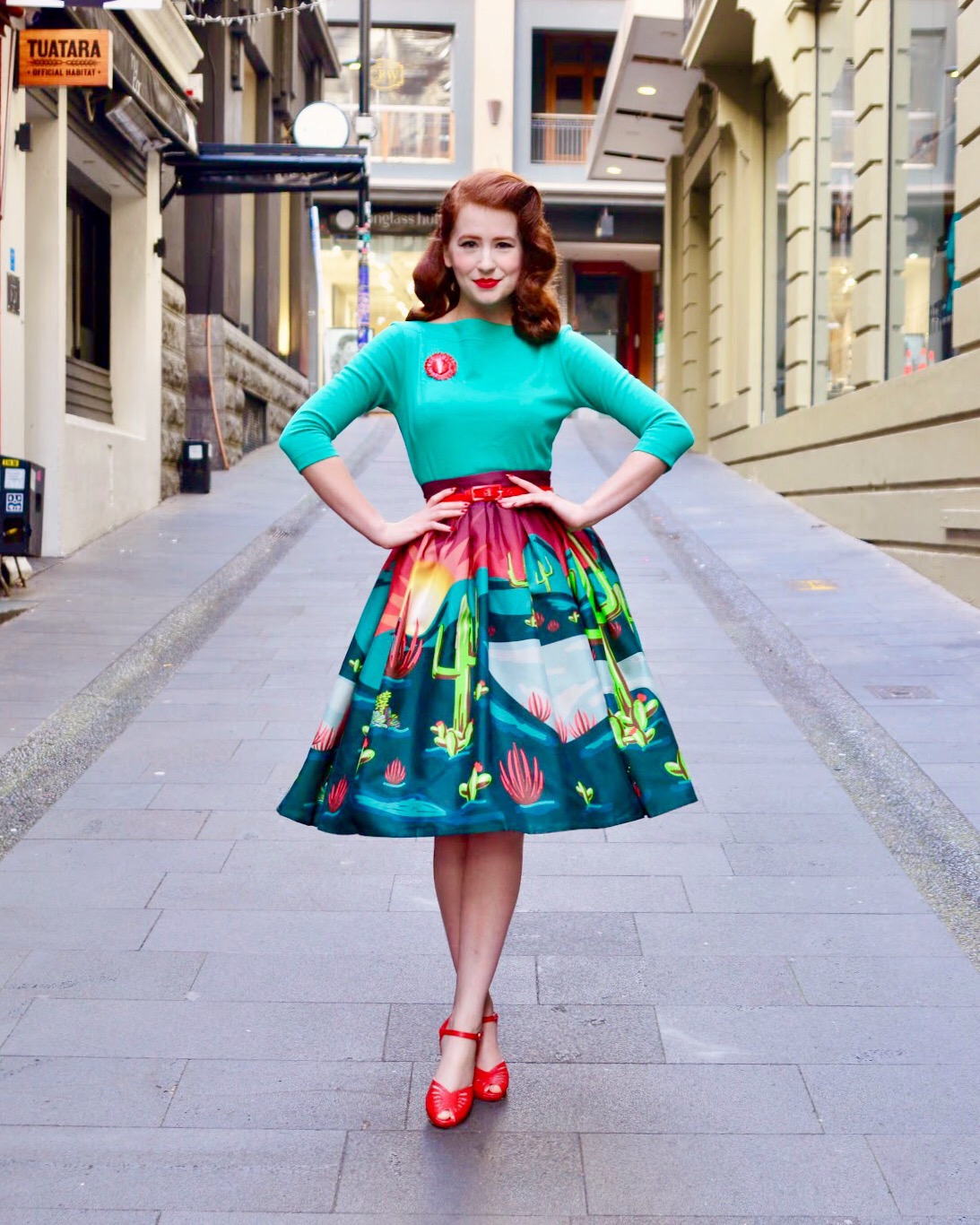 Modern day pinup with an overflowing wardrobe and a love of bright colours