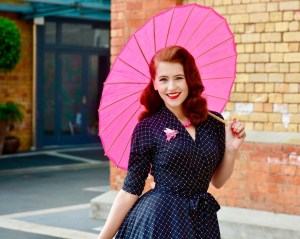 Modern day pinup with an overflowing wardrobe and a love of bright colours